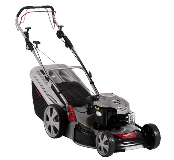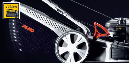 sériově komfortní balíček: výkonný benzinový motor, individuálně nastavitelné držadlo, centrální nastavení výšky sečení, díky vyosenému bubnu sekačky možnost sečení až k okrajům trávníku, velmi velký sběrný koš s automatickým ukazatelem naplněnosti