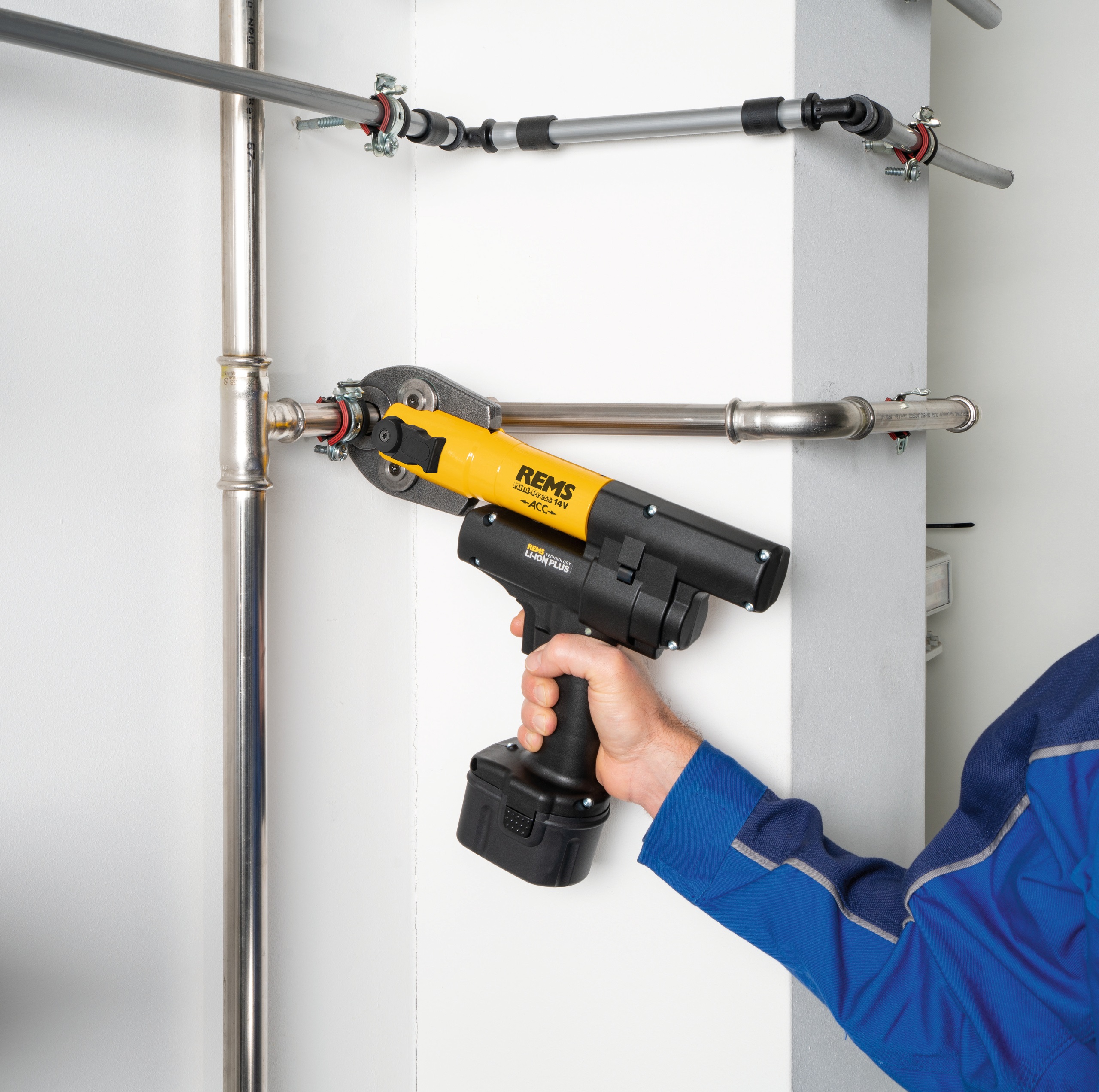 Kompaktní a výkonný akumulátorový radiální lis určený pro profesionální lisování vícevrstvých trubek (Al-PEX) a dalších systémů s lisovanými tvarovkami