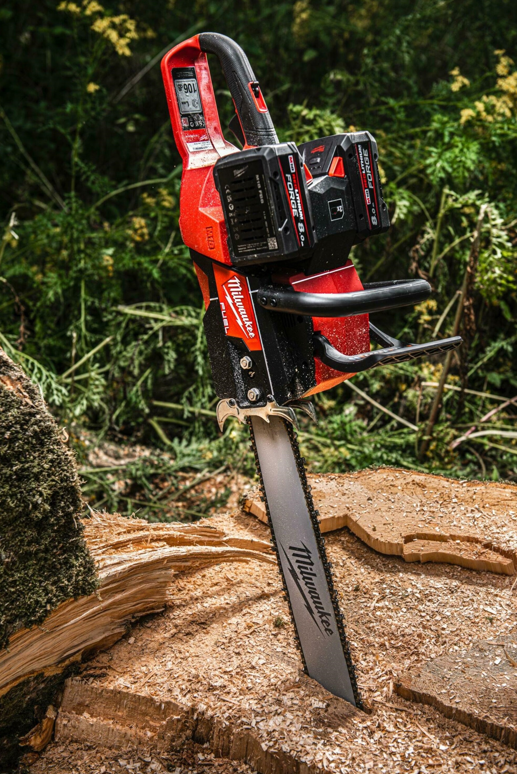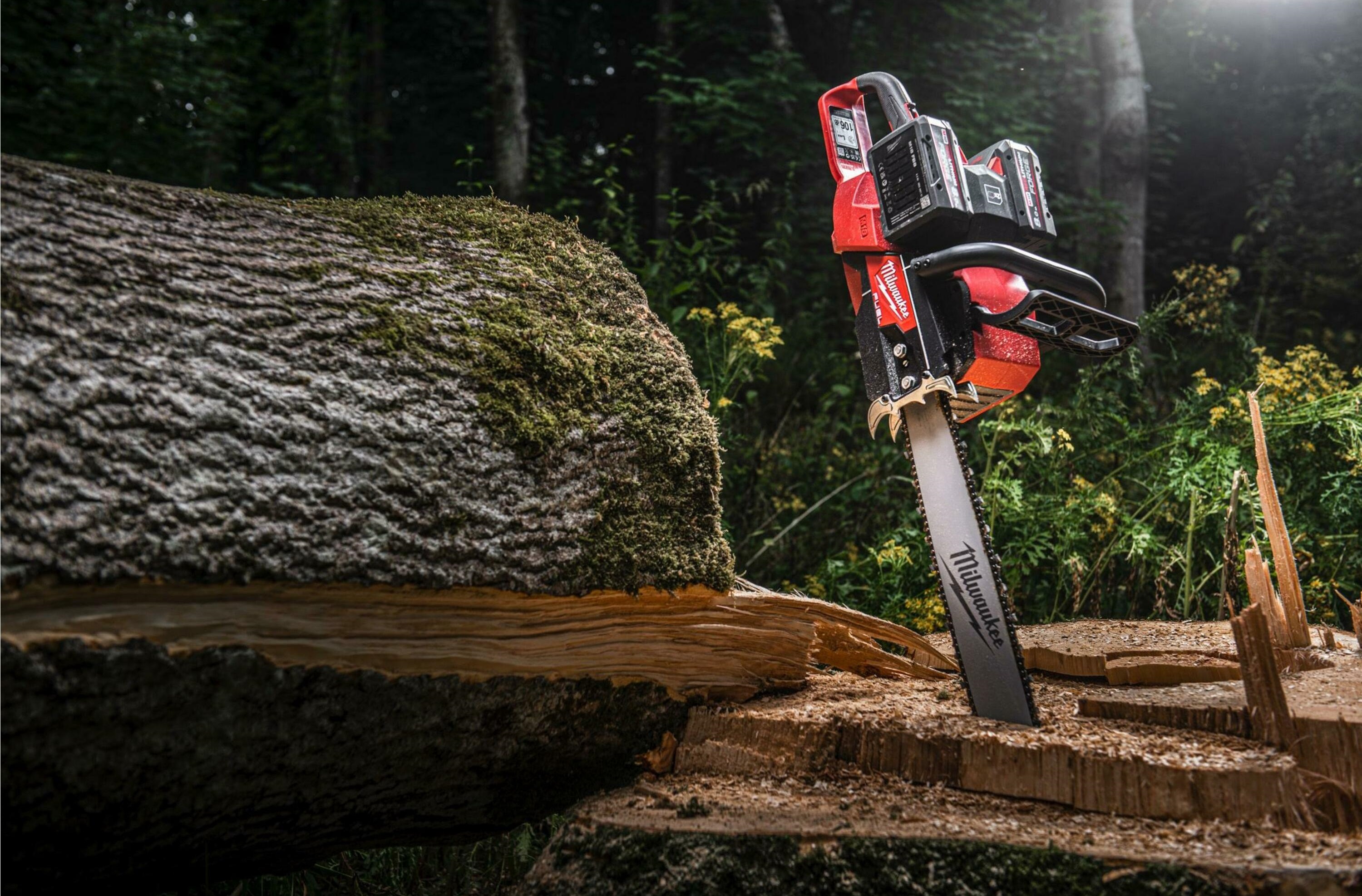 Aku řetězová pila Milwaukee M18 F2CHS50-0 poskytuje výkon srovnatelný s benzínovými pilami o objemu 60 ccm.