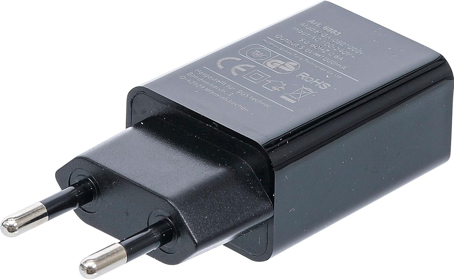 Univerzální USB nabíječka 1 A. Kompatibilní s většinou USB zařízení. Lehká a kompaktní konstrukce. Vhodná pro použití v interiéru
