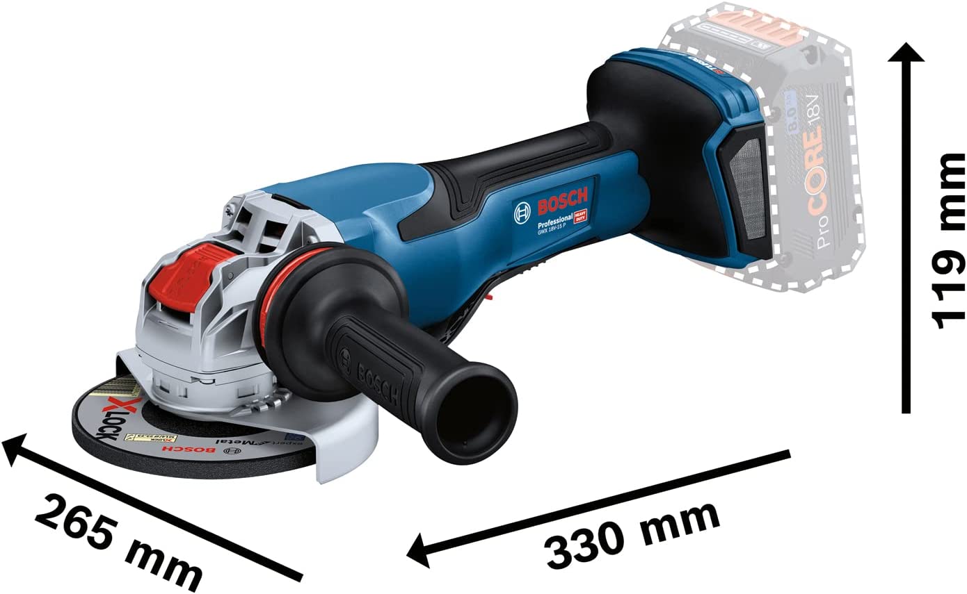 1x akumulátorová úhlová bruska Bosch BITURBO s X-LOCK GWX 18V-15 P