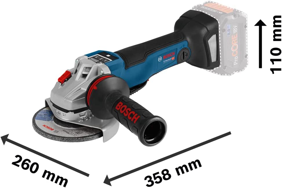 Malá úhlová bruska se stejným výkonem jako síťová bruska s 1000 watty díky bezuhlíkovému motoru a akumulátoru ProCORE18V