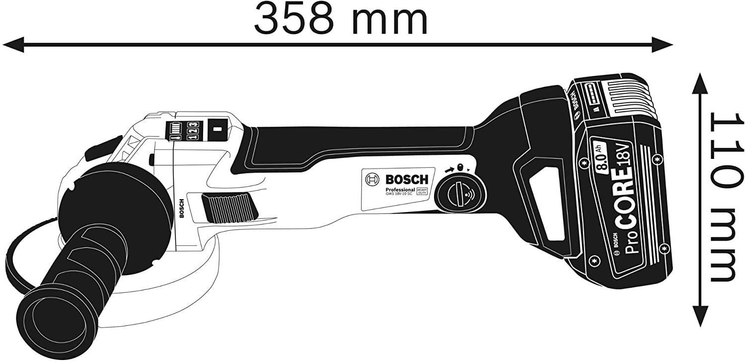 Úhlová bruska dodává energii prostřednictvím bezuhlíkového EC motoru a 18V baterie ProCORE, která odpovídá výkonu 1000W úhlové brusky