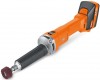 Proti prachu vysoce rezistentní a výkonná, kompaktní akumulátorová přímá bruska s velkou hloubkou zanoření pro broušení a leštění.