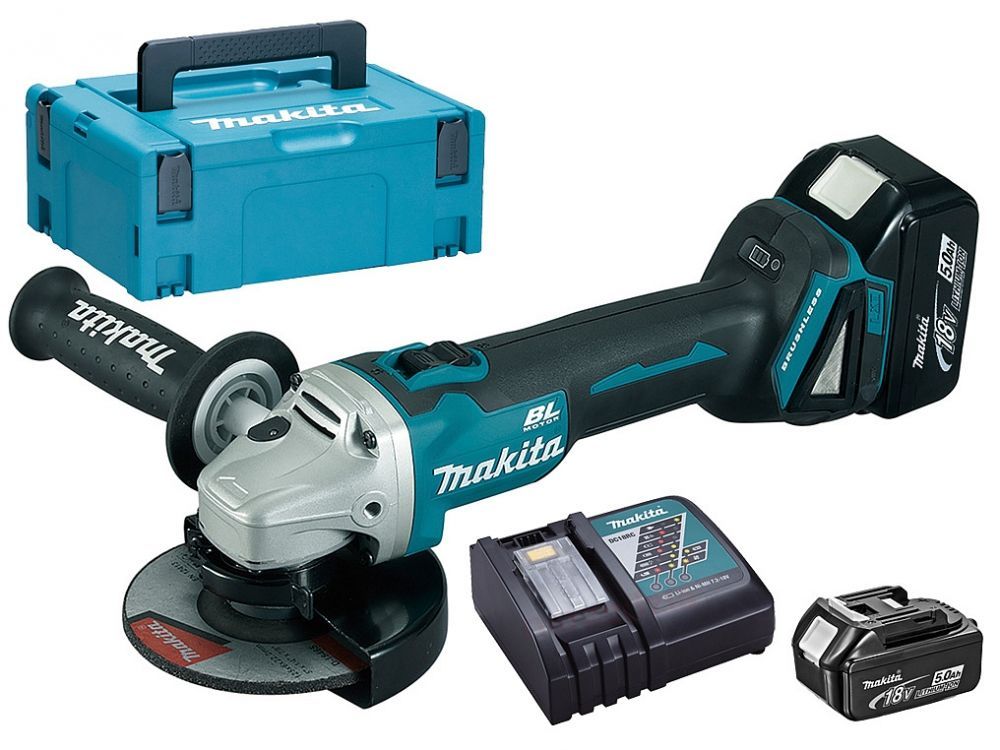 Makita DGA504RTJ aku úhlová bruska 2x 18V 5,0 Ah, 125 mm v systaineru