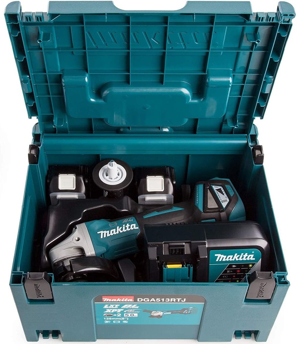 Vybavena konstantní elektronikou, ochrana proti přetížení, antivibrační rukojeť a rychlost je elektronicky nastavitelná Kufr MAKPAC se dvěma bateriemi 5,0 Ah a rychlonabíječka