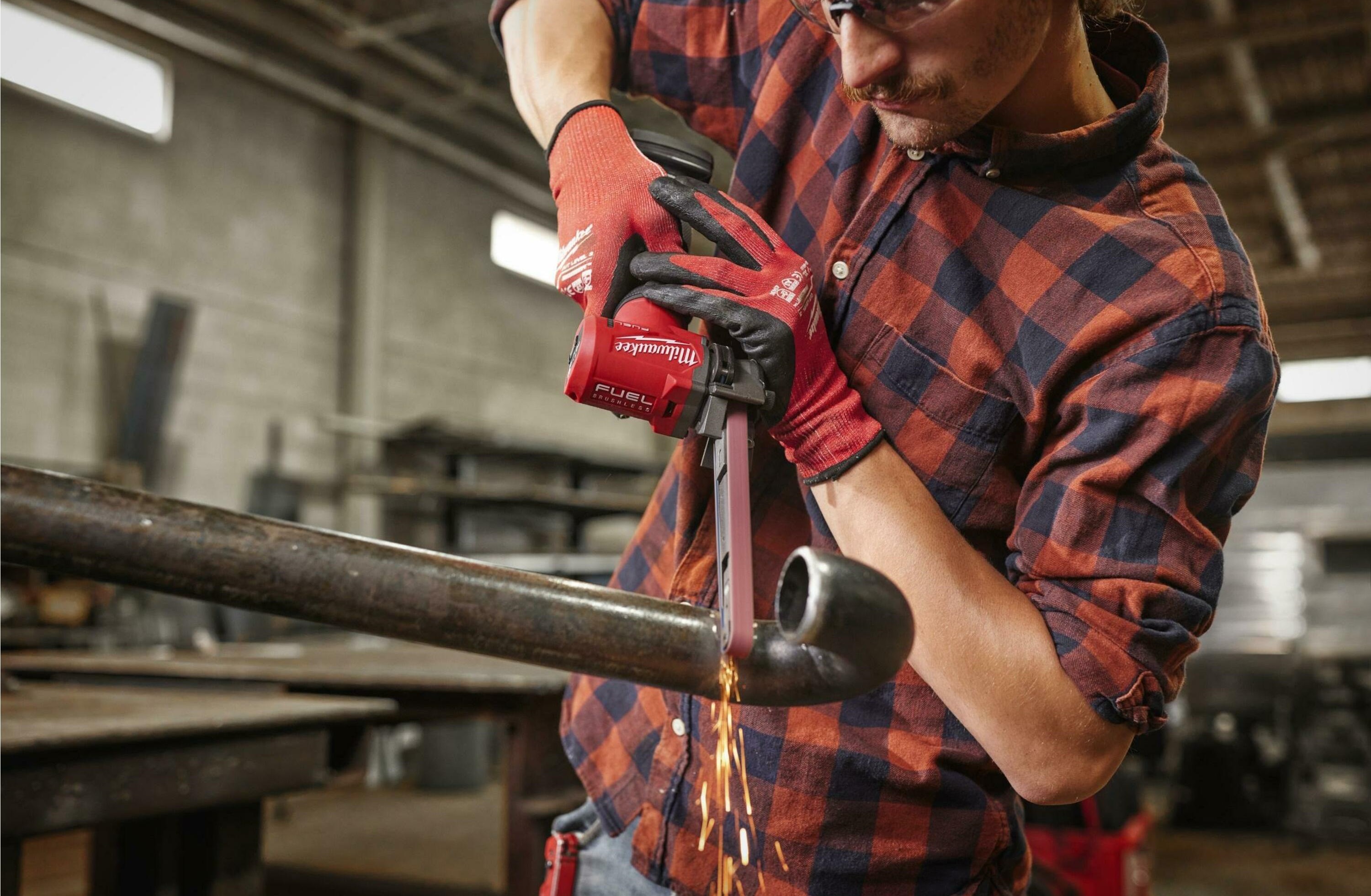 Aku pásová bruska Milwaukee M12 FBFL13-402B je profesionální nástroj určený pro přesné broušení, odjehlování a úpravu povrchů i v těžko přístupných místech. Díky kompaktní konstrukci, nízké hmotnosti a vysokému výkonu představuje ideální alternativu k pneumatickým bruskám. Je navržena pro každodenní použití v dílnách, výrobě i montážních provozech.