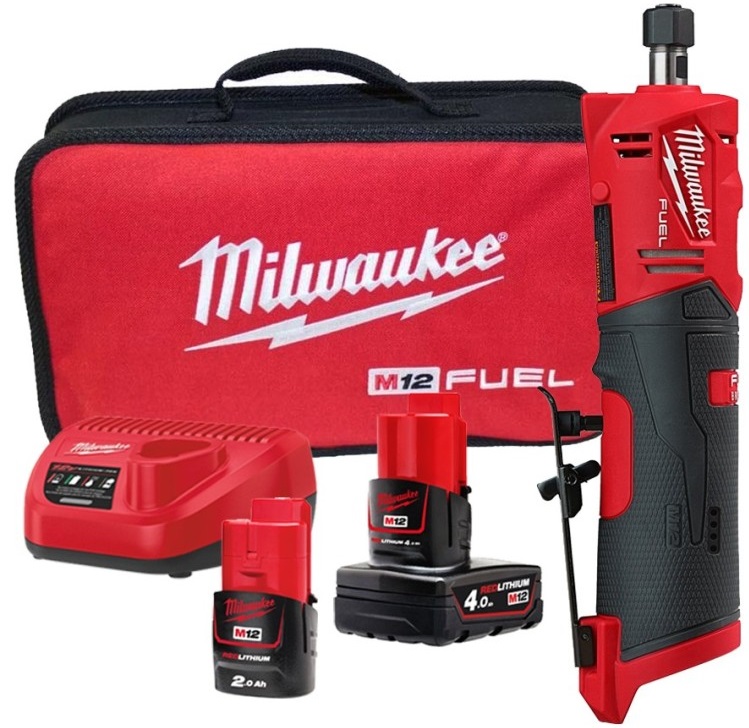 Milwaukee M12 FDGS-422B aku přímá bruska, kleština 6 a 8 mm, 2x aku (2,0 Ah + 4,0 Ah), 4933471436
