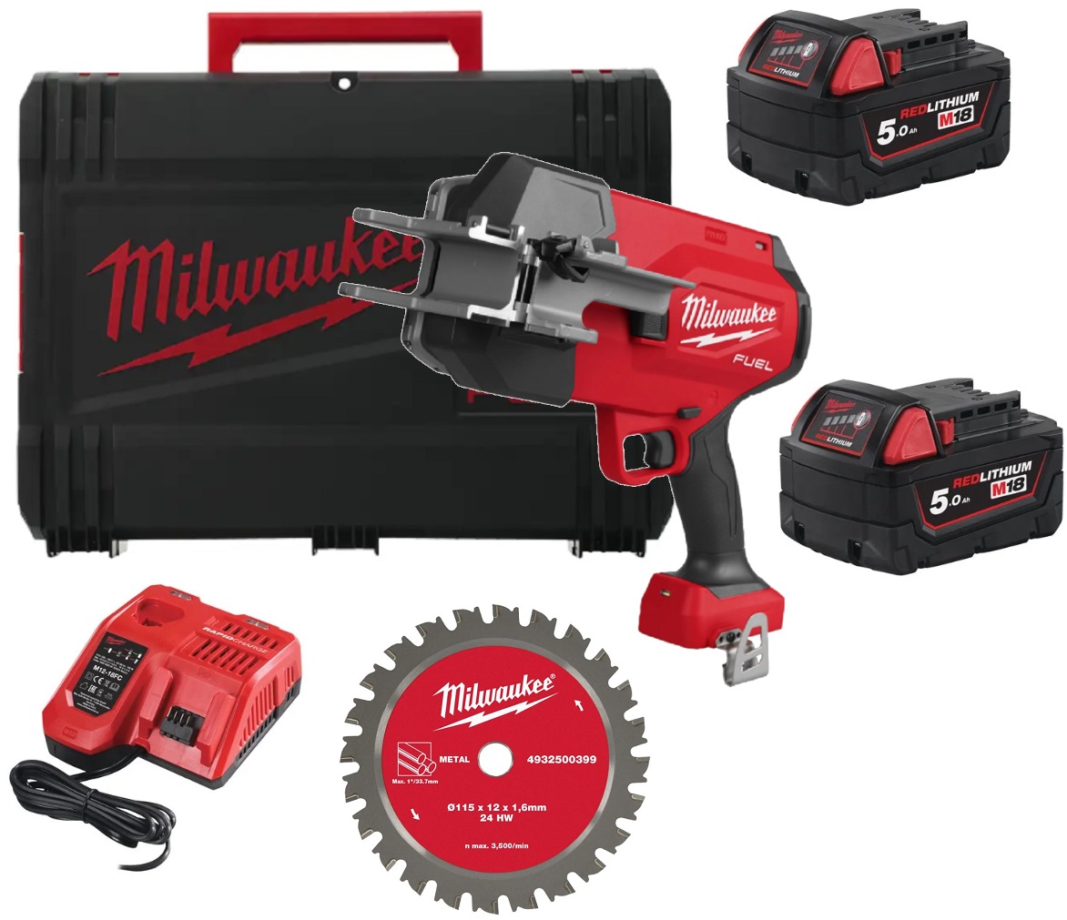Milwaukee M18 FPCS-502X aku řezák ocelových trubek, 2x M18 B5 + M12-18 FC + FPCSB + kufr, 4933498915