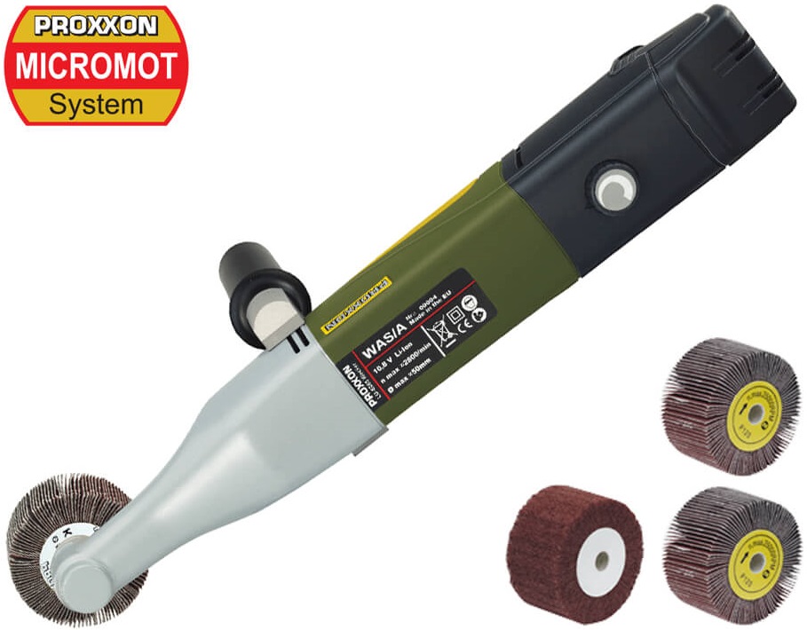 Aku bruska WAS/A je mobilní verze brusky Proxxon WAS/E, ale bez kabelu.