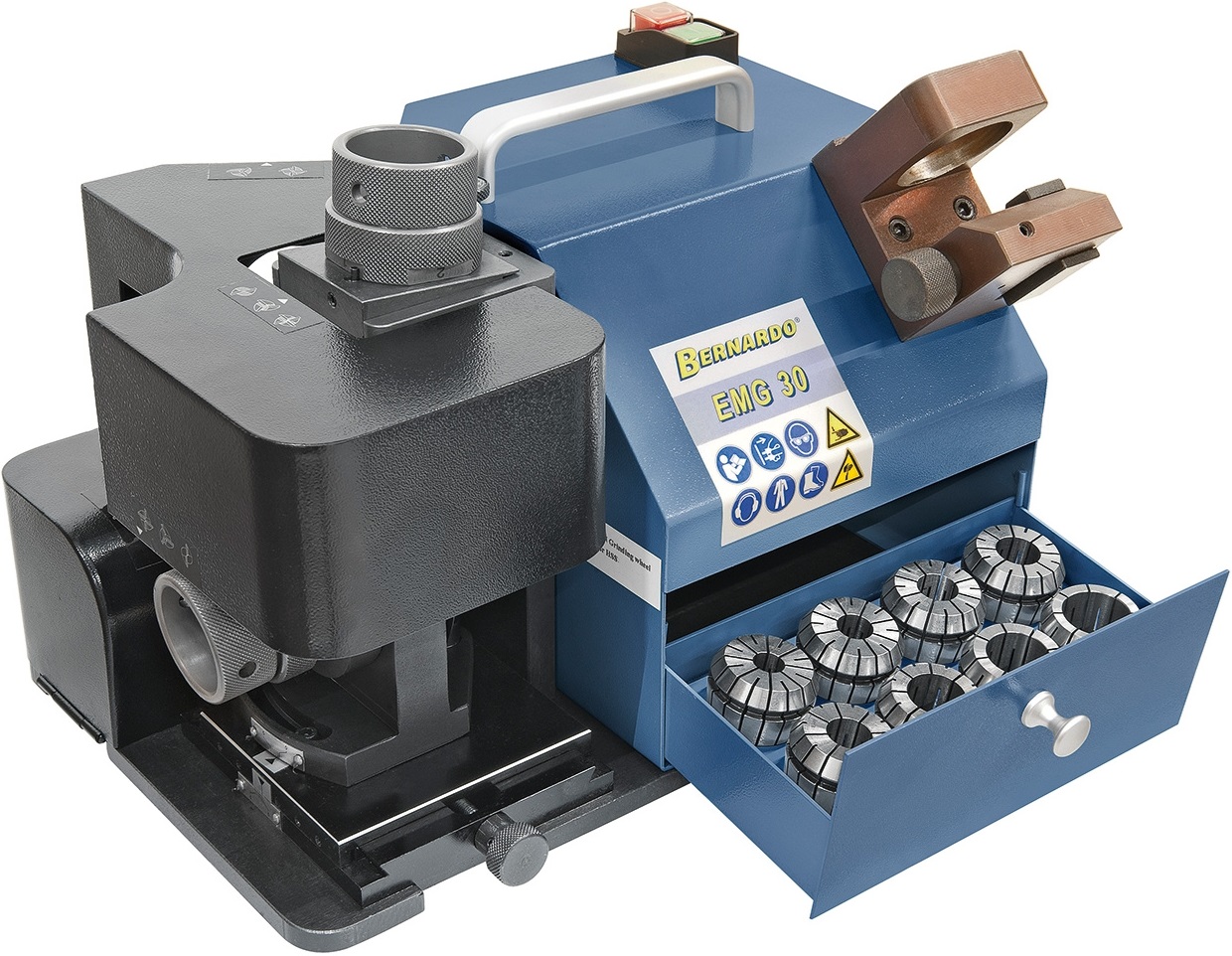 Profesionální bruska Bernardo EMG 30 je určena pro přesné broušení břitů HSS a tvrdokovových fréz o průměrech 12–30 mm.