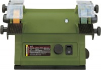 S jedním kotoučem 50 × 13 mm z ušlechtilého korundu (tvrdost N) na broušení a ostření a jedním kotoučem z karbidu křemíku (měkké pojivo) na velmi tvrdé materiály