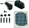 Čerpací systém se solárním pohonem se skládá ze solárního modulu, ponorného čerpadla s připojovacím vedením o délce 5 m a sady trysek. Regulovatelné množství vody na čerpadle. Vhodné pro fontány až do cca 30 cm výšky, pro fontánky na balkon či terasu, nebo chrliče. Solární modul má multifunkční zemní bodec, pomocí jehož se může zabodnout do země, případně připevnit k podlaze nebo na stěnu. Čerpadlo má elektronický bezkartáčový pohon a je odolné proti opotřebení.
