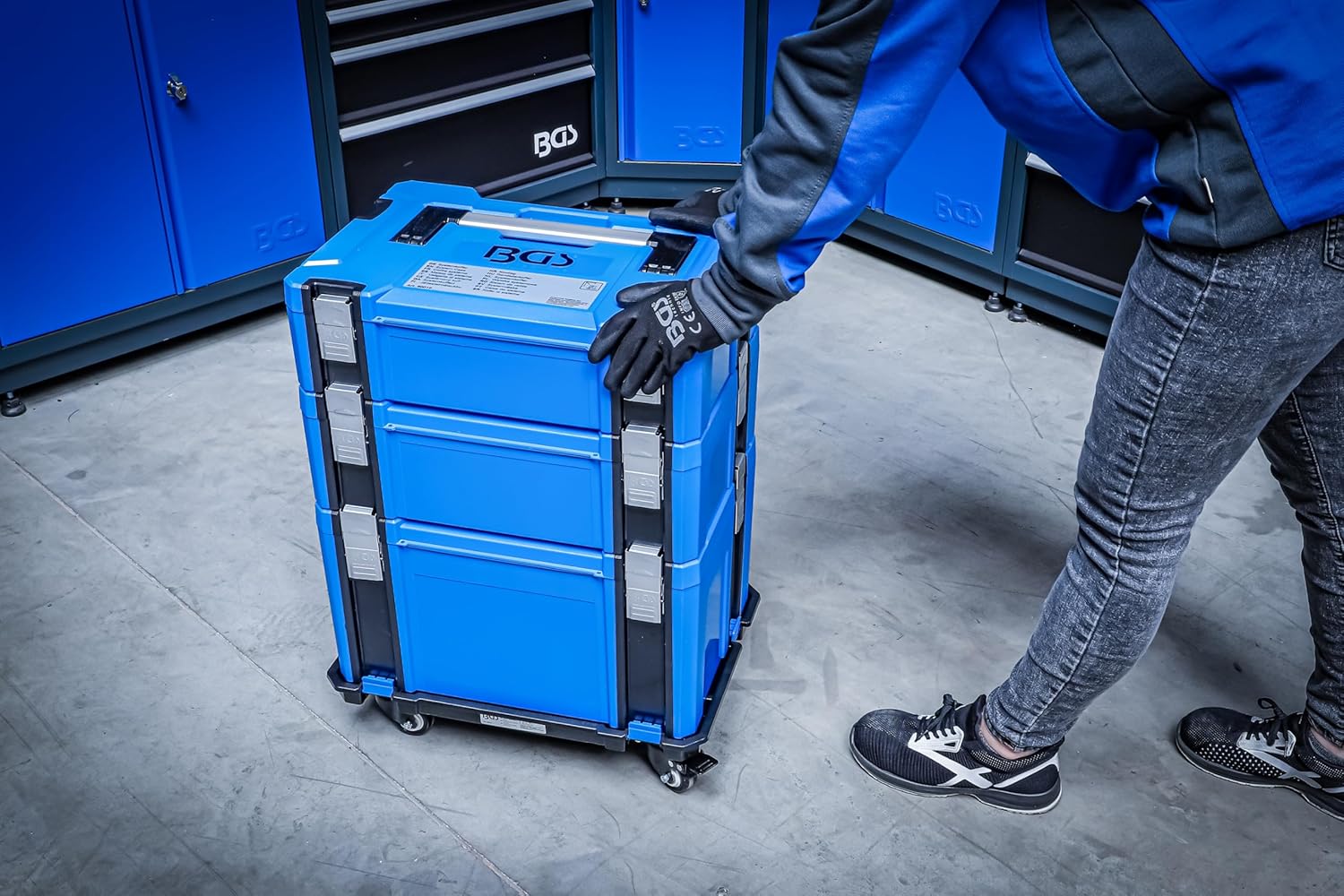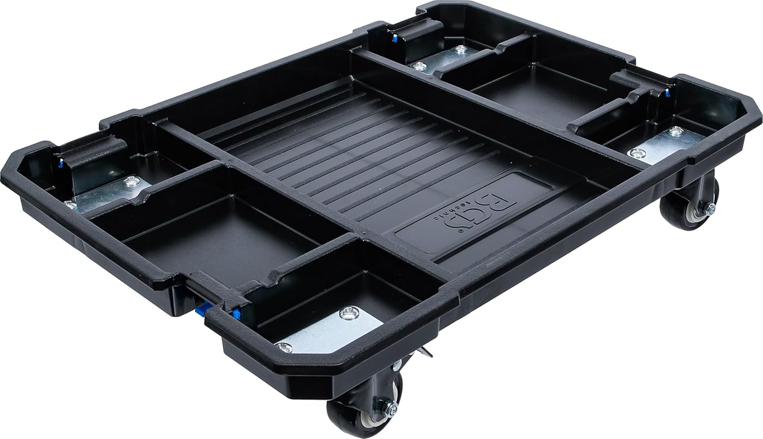 Pojízdný podstavec BGS 80014 je určený pro všechny systémové kufry BGS a zajišťuje jejich snadnou a bezpečnou mobilitu.