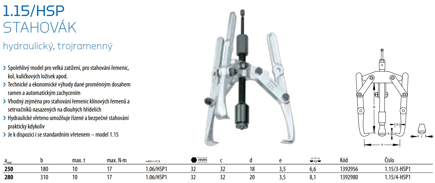 1.15/HSP stahovák hydraulický, trojramenný