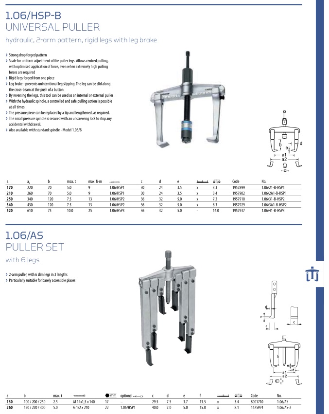 1957937 univerzální stahovák hydraulický, dvojramenný, tuhá ramena s aretací 1.06/41 B HSP3 Gedore