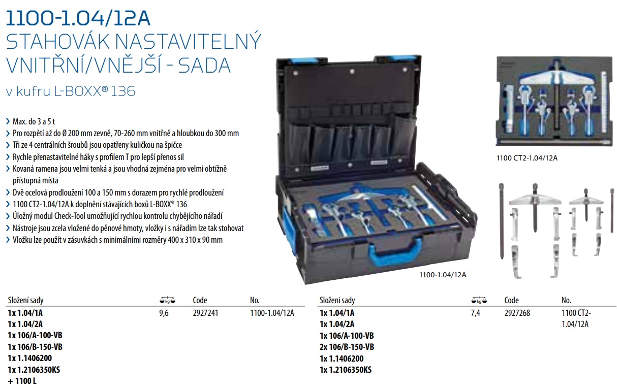 Gedore 1100-1.04/12A stahovák nastavitelný vnitřní/vnější 2927241 v kufru L-BOXX 136