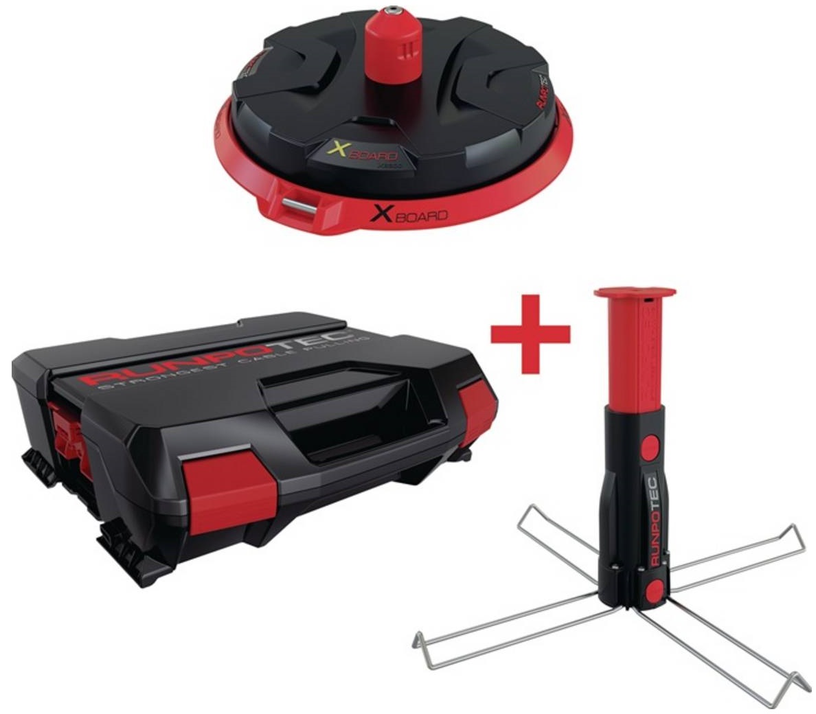 Kompaktní X-BOARD – XB 300 je univerzální profesionální navíječ a odvíječ kabelových bubnů pro všechny malé až střední kabelové bubny. XB 300 se vyznačuje svou malou, lehkou a plochou konstrukcí a přesto je zatižitelný až do 300 kg. Zvláště vhodný pro poškozené kabelové bubny. Umožňuje nerušenou a efektivní práci s kabely bez zamotání. Neklouzající a bezpečné stání zajišťuje 5 pogumovaných nožiček. Optimální pro ochranu povrchů už hotových podlah. Díky odnímatelnému trnu lze použít pro kabelové bubny s různými velikostmi otvorů.