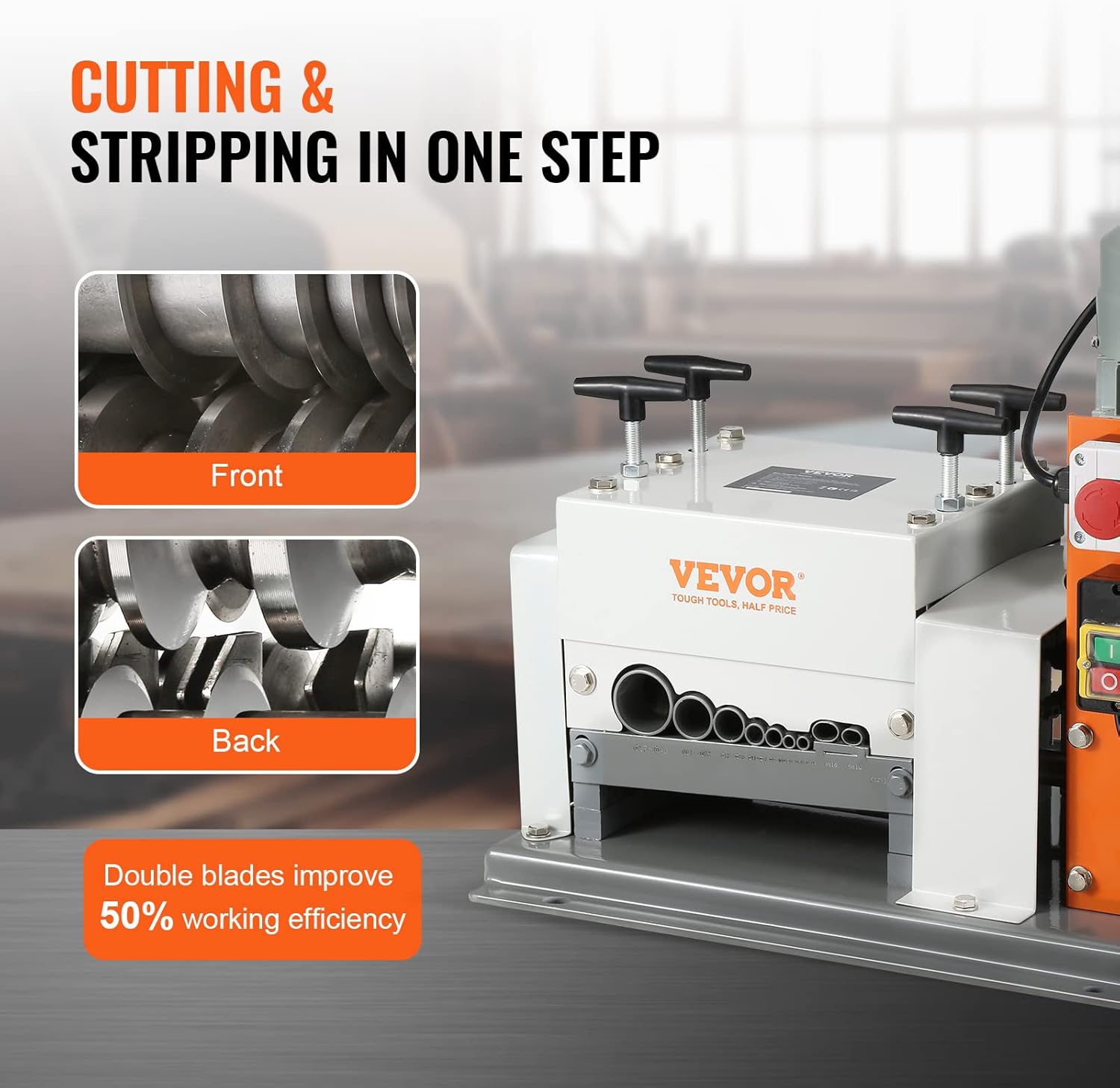 VEVOR odizolovací stroj elektrický 1,5-40 mm, 1500 W, rychlost 27 m za minutu, 65 Mn čepel z pružinové oceli, ideální pro odizolování měděného drátu