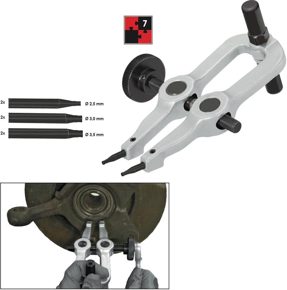 Usnadňuje demontáž často silně zrezivělých vnitřních pojistných kroužků na ložiscích kola