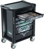 Se 7 zásuvkami (5 mělkých, 2 vysoké) - z toho 2 mělké zásuvky jsou vybaveny pěnovými vložkami a nářadím (včetně ráčny Zyklop Speed a příslušenství, otevřených klíčů Joker, šroubováků Kraftform, úhlových klíčů)