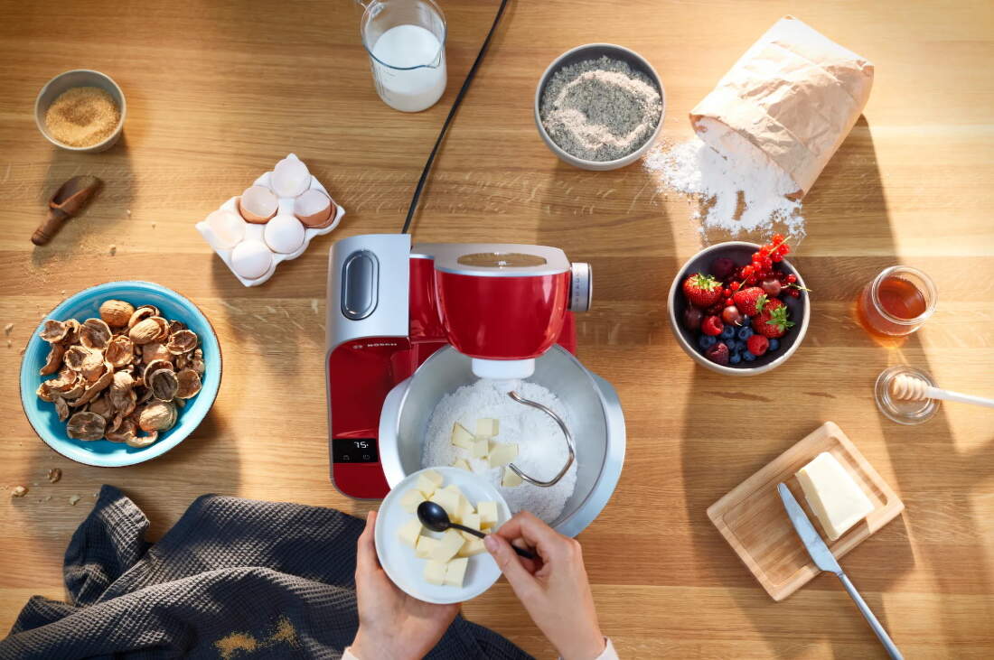 Bosch MUM5X720 v červeném provedení je všestranný kuchyňský pomocník pro přípravu nejrůznějších pokrmů. Spotřebič má extrémně výkonný 1 000W motor, který zvládne i těžká těsta, 3D planetární míchání a 7 rychlostních stupňů. Výhodou je také velká nerezová mísa o objemu 3,9 litru, která je speciálně tvarovaná pro optimální přípravu těsta. Tento skvělý pomocník má také velmi jednoduché a intuitivní ovládání a bohaté příslušenství, včetně integrované váhy.