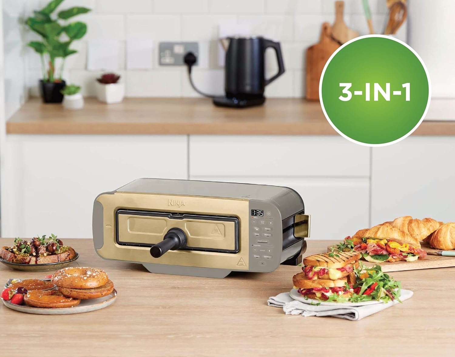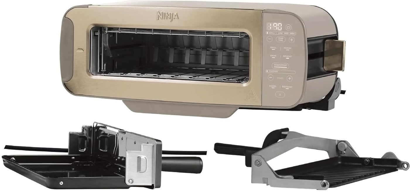 Splátkový prodej - Ninja Foodi 3-in-1 Toaster, elektrický gril s víkem a lis na panini, Stone Gold, ST202EUSTGD