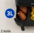 Dva košíky s různou kapacitou: Celkový objem 9 litrů – větší zásuvka o objemu 6 l pro hlavní jídla a menší 3 l pro přílohy nebo občerstvení. Do většího košíku se vejde například celé kuře o hmotnosti 1,2 kg nebo až 1 100 g hranolků.