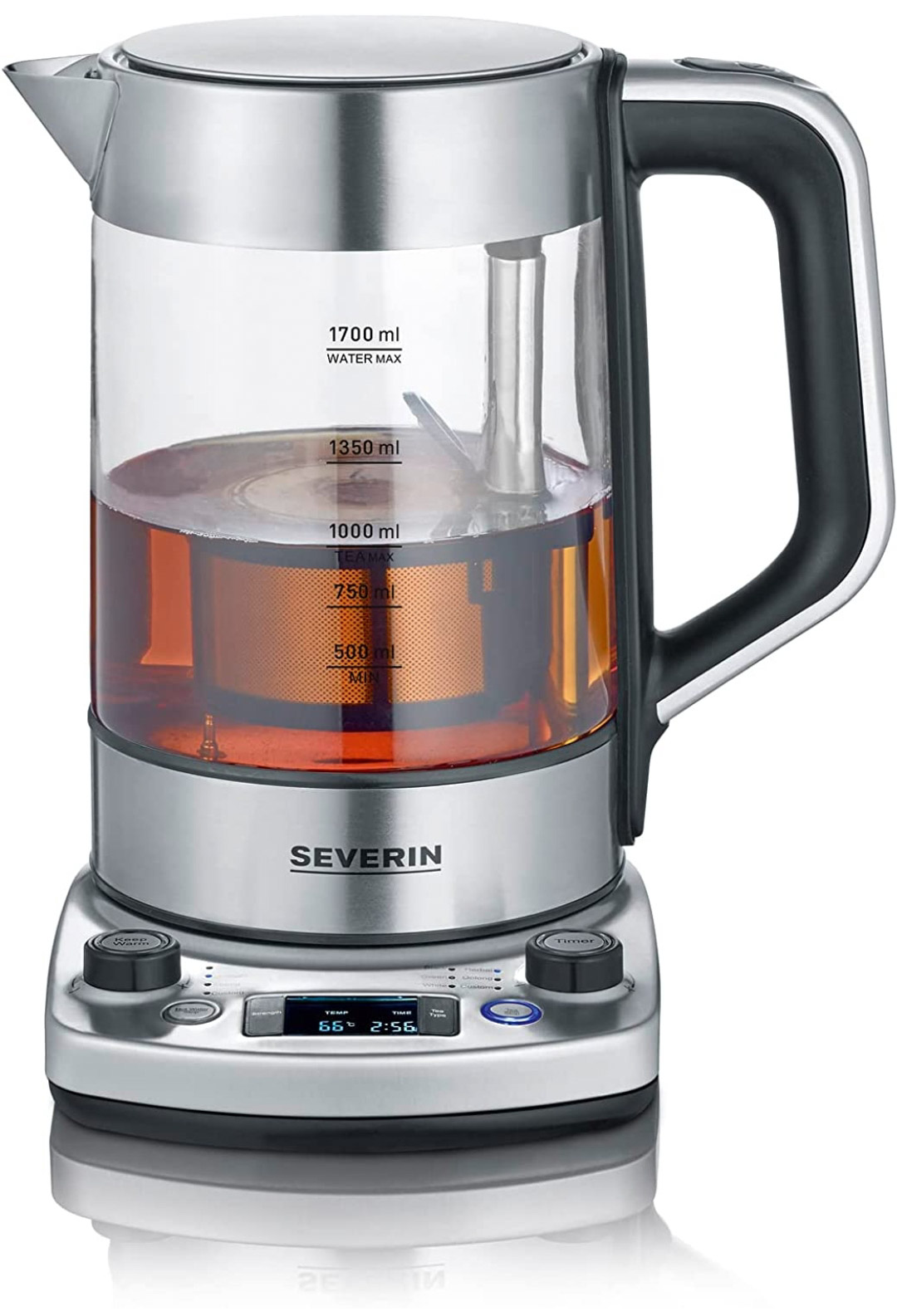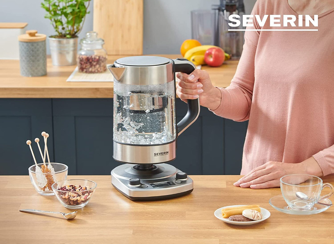 Skleněná stylová konvice Severin WK 3422 Deluxe nejen dobře vypadá, ale také výborně poslouží. Sklo je velmi vkusný doplněk, proto je konvice skvělým spotřebičem do moderní domácnosti. Konvice ohřívá vodu velmi rychle díky příkonu 3000 W, díky čemuž se nemusíte obávat dlouhého čekání na kávu nebo čaj. Hlavní výhodou je její objem 1,5 l i vyjímatelný filtr. Rychlovarná konvice se pyšní vestavěnou pojistkou proti přehřátí při zapnutí bez vody. Topná spirála rychlovarné konvice Severin WK 3422 Deluxe není vidět, jelikož je schovaná pod topným dnem.