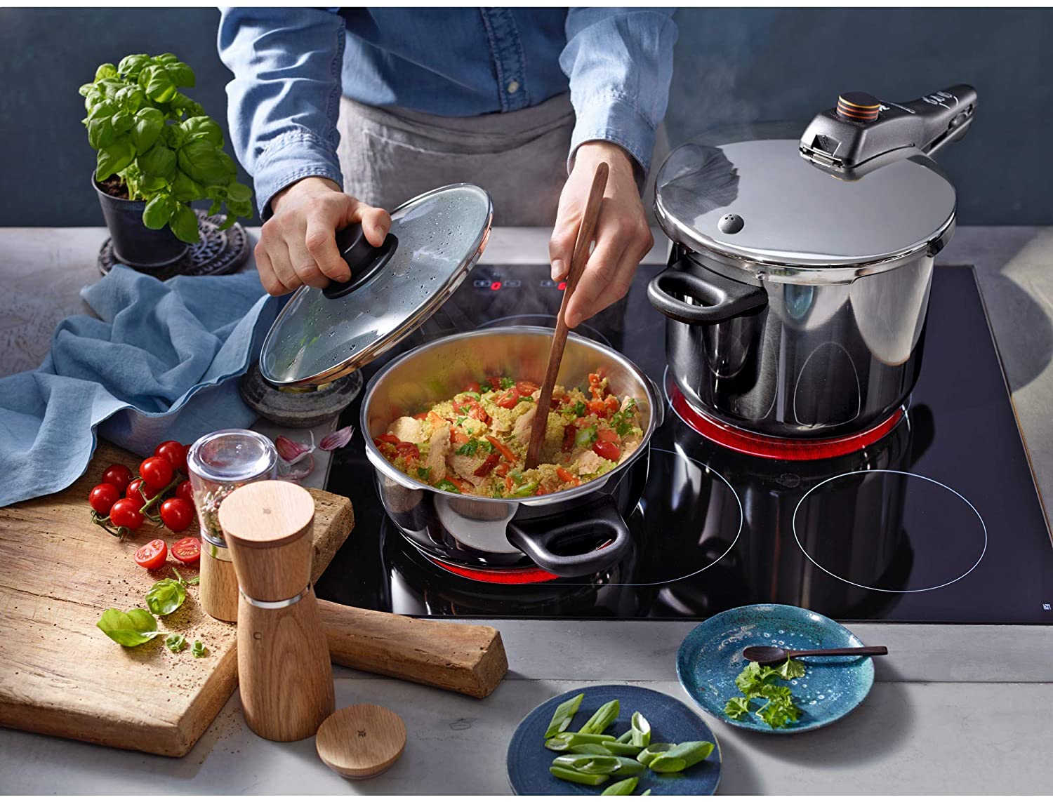 Tlakový hrnec je vyroben z vysoce kvalitní nerezavějící oceli Cromargan, která poskytuje jak estetické, tak i praktické využití. Je odolná vůči korozi, vnějším pachům a chutím. Na výběr máte z dvouúrovňového nastavení 110 °C a 119 °C stupňů.