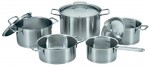 8-dílná sada nádobí na varné desky Vhodné pro všechny typy varné desky: plynová, elektrická, keramika, indukce, halogen 18/10 nerezové oceli Rendlík Ø 16 cm, 1,5 l Hrnec na maso Ø 16 cm, 1,5 l Hrnec na maso Ø 20 cm,