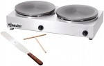 2 přepínatelné plotny/rozměr 1 plotny ø 400 mm Stupně teploty 1 - 8 Příkon 12 kW Rozměry (šxhxv) 830x430x195 mm Hmotnost 40 kg Trysky přiloženy Včetně obracečky a stěrky