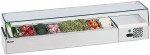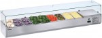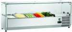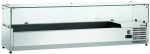 Chladící nástavec na 8 x 1/4 GN, hloubka 150 mm Vana chlazená agregátem Konstrukce z chromniklové oceli, skleněný kryt, digitální teploměr Nastavení teploty 0 až +10 °C Příkon 180 W/220 - 240 V Rozměry (ščxhxv) 1800x335x425 mm