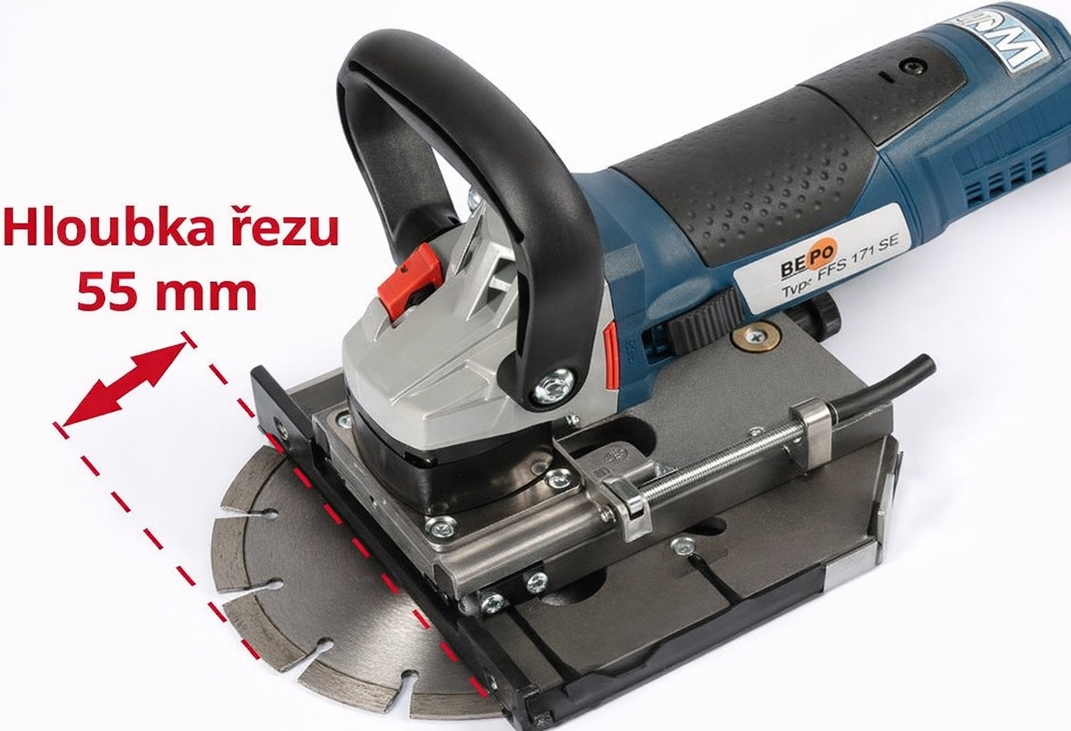 Hloubka řezu: 0 – 55 mm, plynule nastavitelná