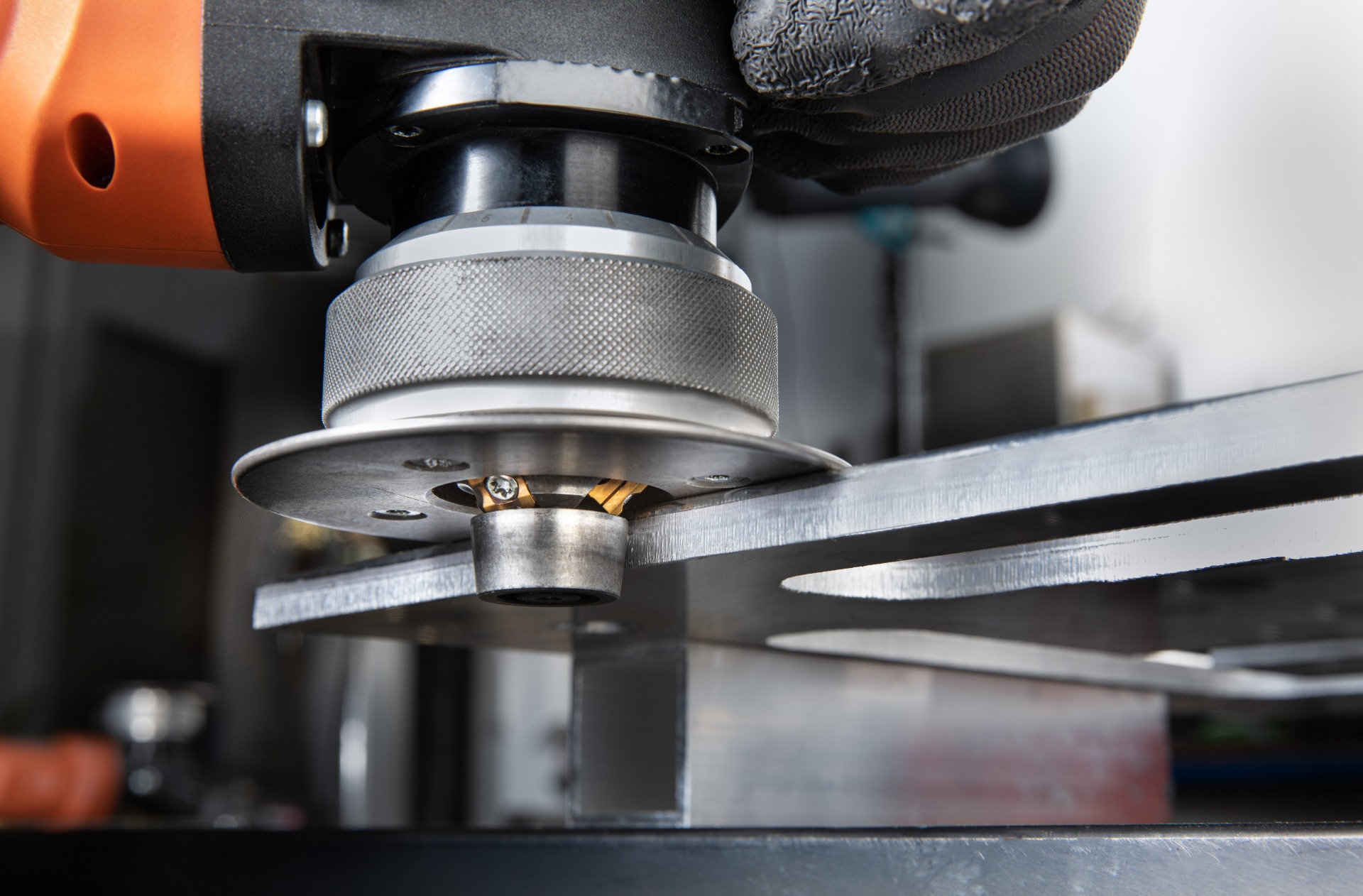 Univerzálně použitelná frézka na srážení hran s boosterovou a pružinovou technologií pro optimální přípravu svarů.