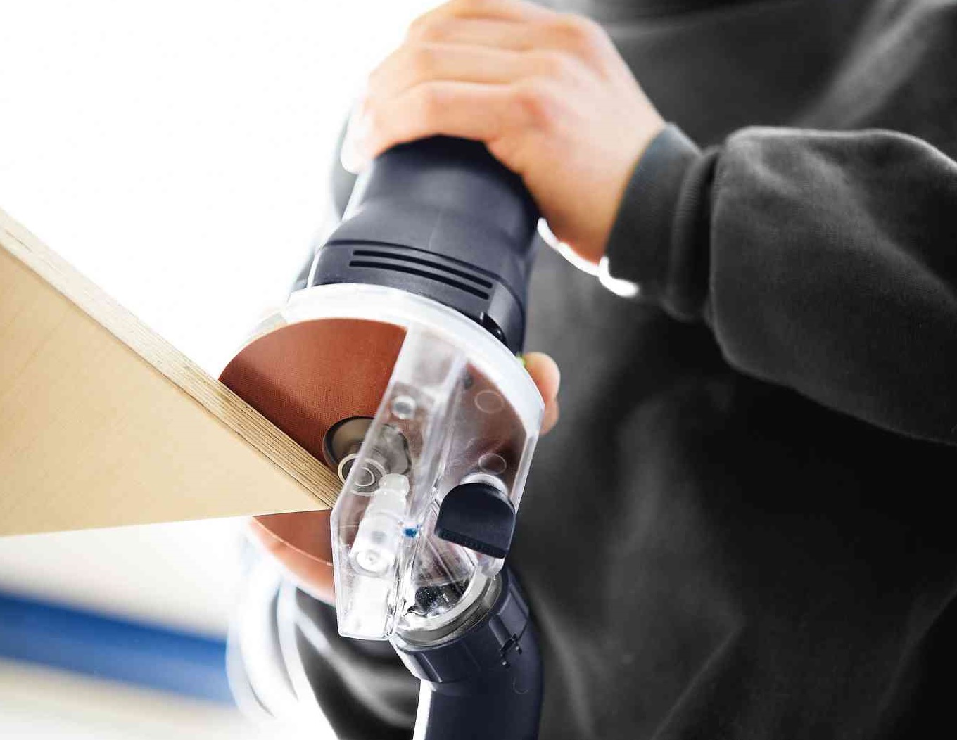 Srážení hran, zaoblování, profilování a drážkování, stejnoměrně, čistě a bez otřepů s hranovou frézkou OFK 500. Váží pouze 1,4 kg a díky ideálnímu těžišti je mimořádně šikovná také pro svislé a vodorovné použití. Zvláštností tohoto nářadí je frézovací systém: veškeré nástroje pro hranovou frézku mají stejný vnější průměr. Díky tomu byl otvor ve stolu frézky zmenšen na minimum, což zabraňuje převržení frézky v problematických oblastech v rozích.