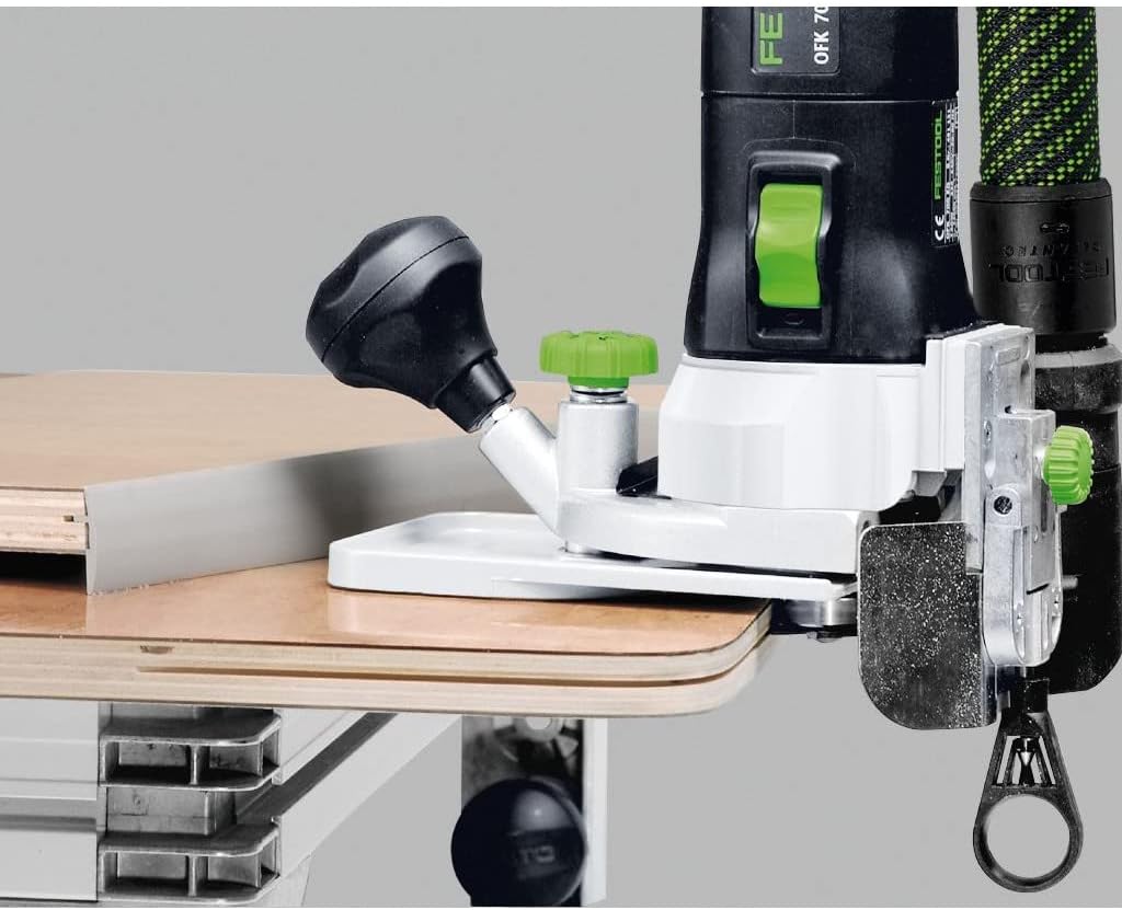 Multitalent na hrany, přesvědčí na rovině i v křivkách: hranová frézka OFK 700 je multitalent mezi hranovými frézkami. Zarovnávací frézování přesahů hran a ploch je velice snadné, nehraje přitom žádnou roli, zda je obrobek malý nebo velký, hrany zakřivené nebo rovné. Velký, rychle přestavitelný stůl frézky zaručuje v každé pracovní poloze stabilní opěrnou plochu a bezpečné vedení nářadí, přestavitelný frézovací stůl s velkou nosnou plochou.