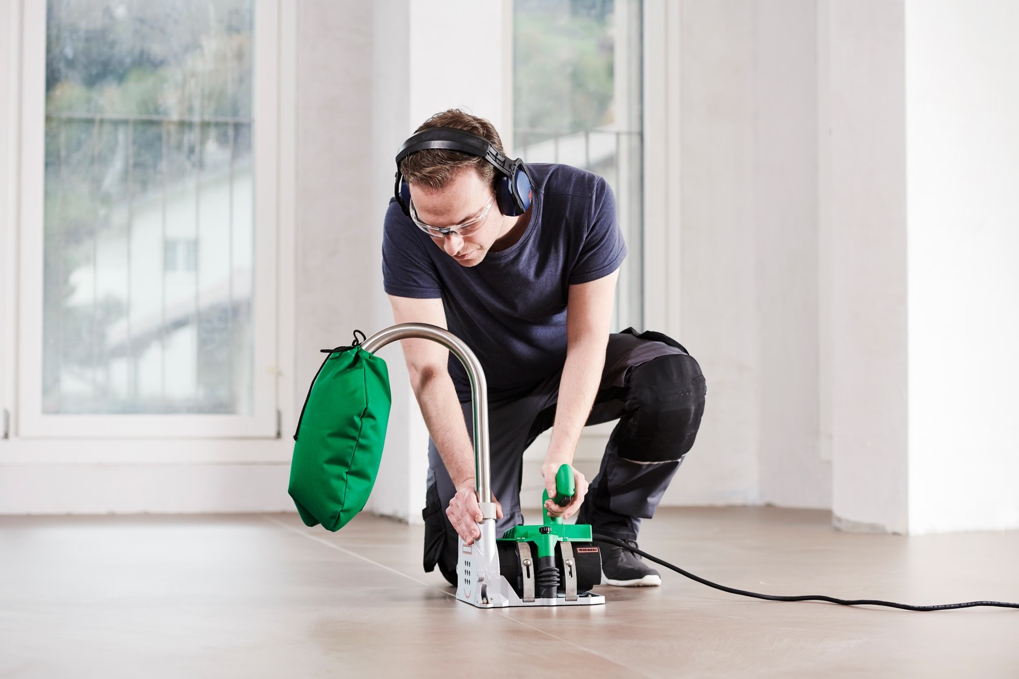 GROOVER frézuje drážky pro sváry do silných, odolných podlahových krytin z PVC-P, PE a linolea. Tři válečky mu umožňují plynulý klouzavý pohyb a řez v konstantní hloubce i při vysokých rychlostech. Velmi vysoká rotační řezná rychlost ve dvou úrovních, nastavitelná vodící kola pro přesný pojezd, práce bez prachu a nečistot díky vestavěnému ventilátoru, možnost drážkování i v blízkosti okrajů.