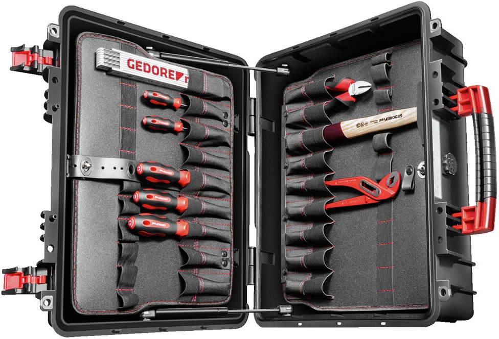 Gedore Azubi L je základní, ale velmi kvalitní kufřík s nářadím určený především pro učně, začínající řemeslníky a domácí dílny. Nabízí pečlivě vybraný 57dílný sortiment nářadí pro nejběžnější práce, jako je šroubování, povolování, řezání, měření a základní montážní činnosti.