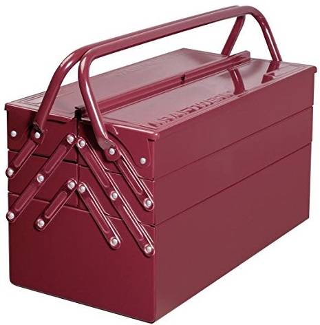 Díky výklopnému systému přihrádek je veškeré nářadí přehledně uloženo