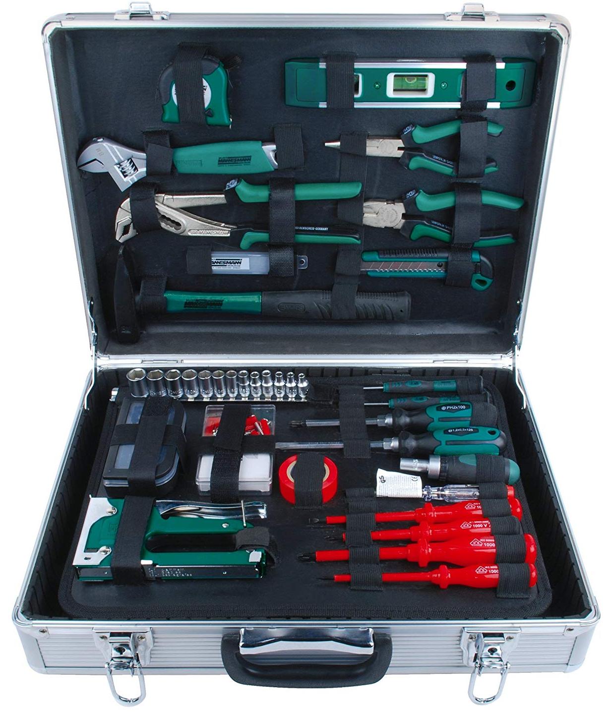 Sada obsahuje vše, co člověk potřebuje pro ruční práce v domě a na domu. Nářadí je z kvalitní chrom-vanadové oceli a přesvědčí kvalitou a dlouhou životností. Nářadí je dobře uloženo a chráněna v praktickém hliníkovém kufru.