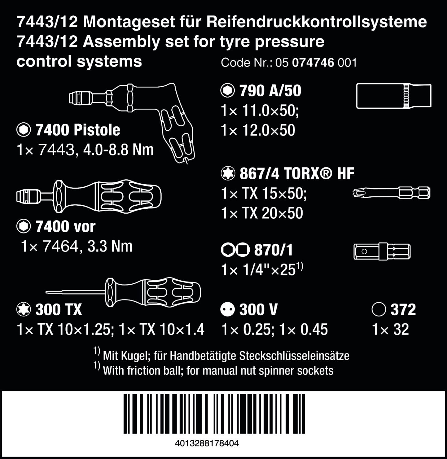 Wera 074746 Montážní souprava 7443/12 pro systémy sledování tlaku v pneumatikách
