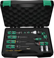 Specializovaná 12dílná sada nářadí Wera pro odbornou montáž a demontáž kontrolních systémů tlaku v pneumatikách.