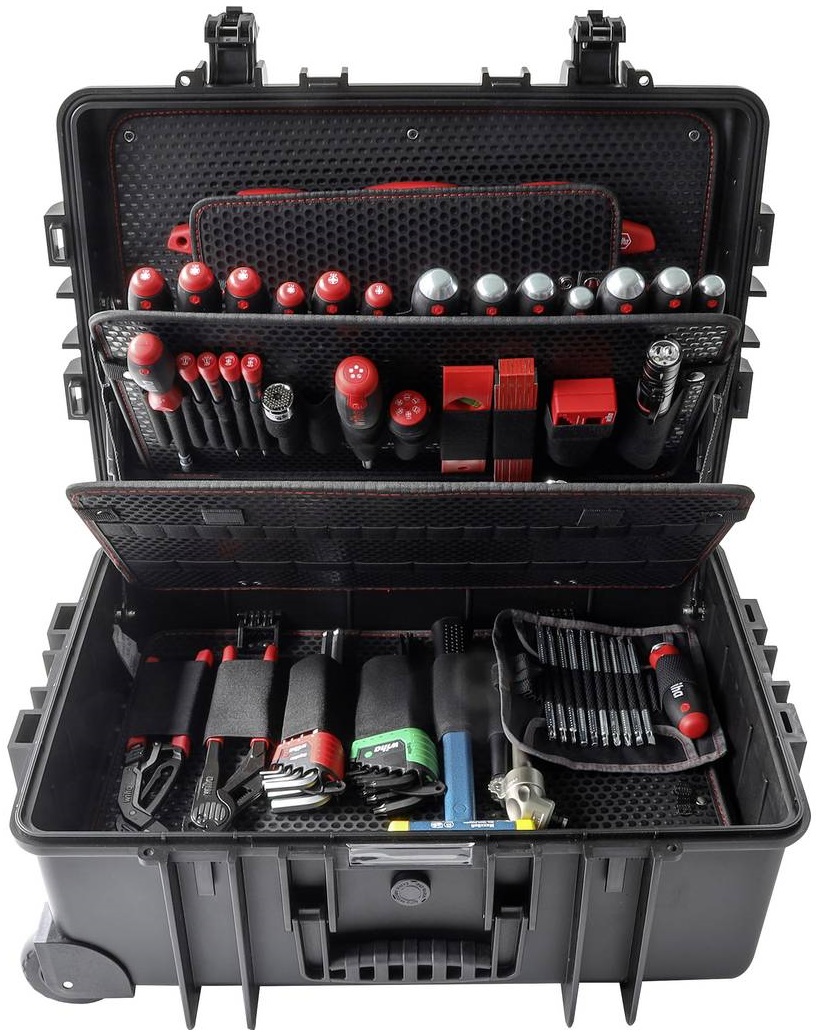 8x nástrčné klíče s rukojetí ve tvaru T (5,5 / 6/7/8/10/11/13/17 mm) + 4x drážkové šroubováky (3,5 / 5,5 / 6,5 / 10 mm) + 3x šroubovák Phillips (PH1 / PH2 / PH3) + 2x šroubovák Phillips (PZ1 / PZ2) + 4x šroubovák Torx (T15 / T20 / T25 / T30) + 1x nástrčný šroubovák + 2x plochý šroubovák (1. , 5 / 2,5 mm) + 2x šroubováky Phillips (PH00 / PH0) + 1x vložka nástrčného klíče + 1x šroubovák 26 bitů 1/8 "(6,3 mm) + 1 x bit 26 Wiha Šroubovák 1/42 "(6,3 mm) + 1 x držák bitů zásobníku Stubby magnetic + 1 x skládací metr Longlife® Plus Composite 2 m + 1 x svítilna s LED, laserem a UV zářením vč. 3 x AAA baterie + 1 x Vodováha + 1 x magnetizér + 1 x odizolovací kleště + 1 x diagonální řezačka s vysokou pevností + 1 x kleště s jehlovým nosem + 1x kleště s jehlovým nosem ohnuté 40 ° + 1x kombinované kleště s vysokou pevností + 1x diagonální nože s fazetou + 1x diagonální nože s fazetou + 1x kleště na vodní čerpadlo QuickFix Classic + 1x kleště