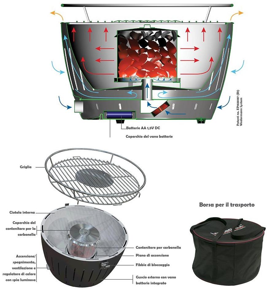 Díky tomuto řešení LotusGrill funguje bez zápachu a nedochází k tvorbě dýmu a zdraví škodlivých látek