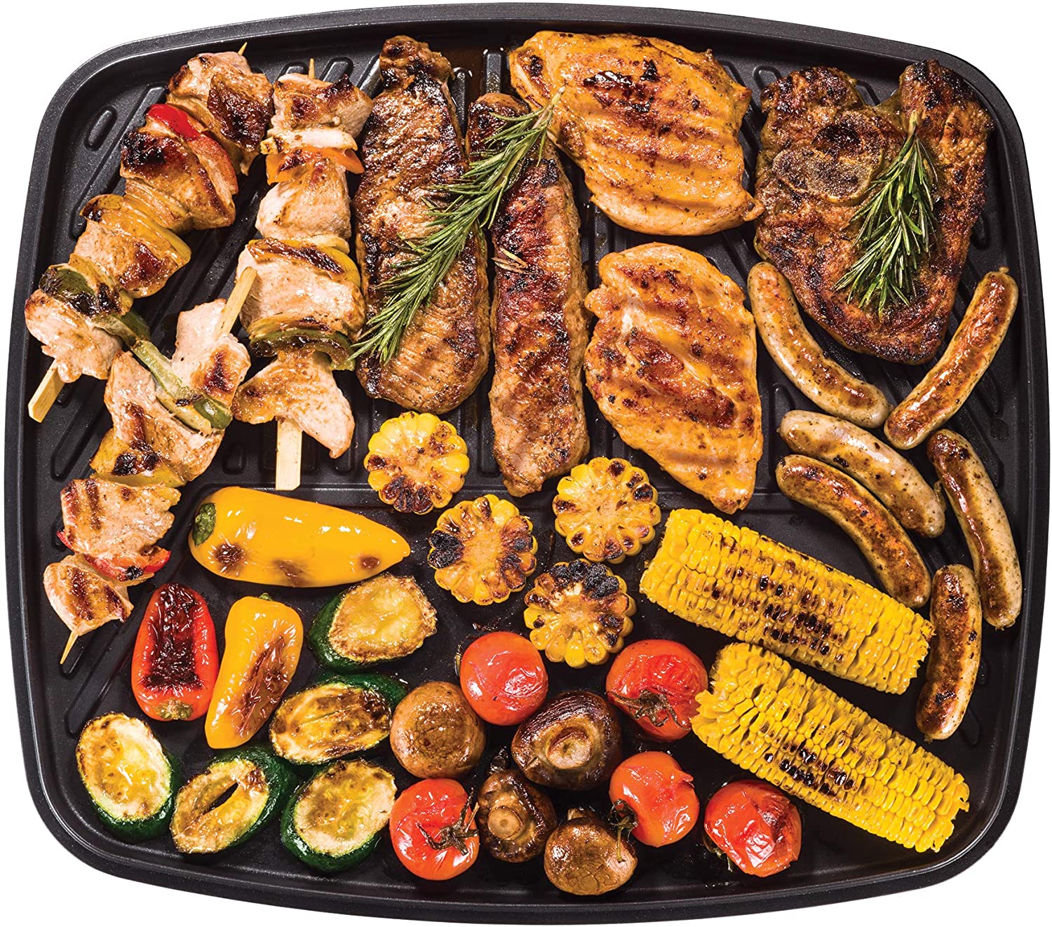 Vyjímatelná grilovací deska s nepřilnavým povrchem a odkapávající tuk pro snadné čištění