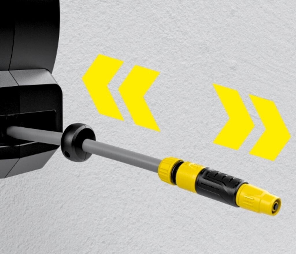 Žádné šrouby, žádné nářadí, žádný stres díky jedinečnému systému Kärcher FlexChange lze hadicový box během několika sekund (např. v zimě) vyjmout z nástěnného držáku nebo z hadicového kolíku