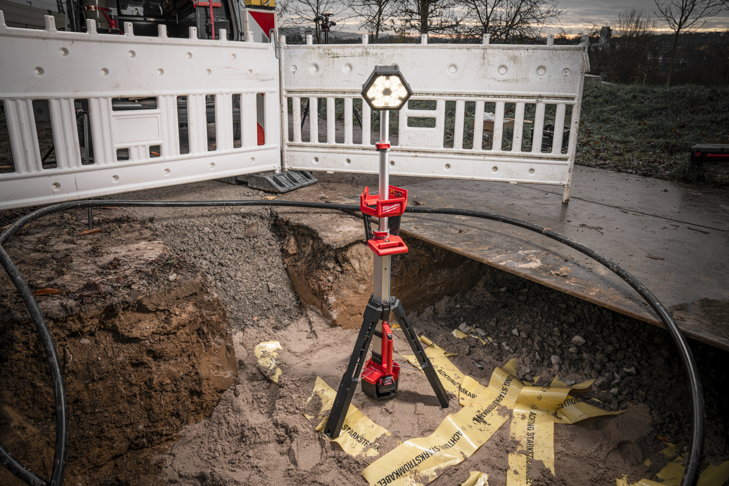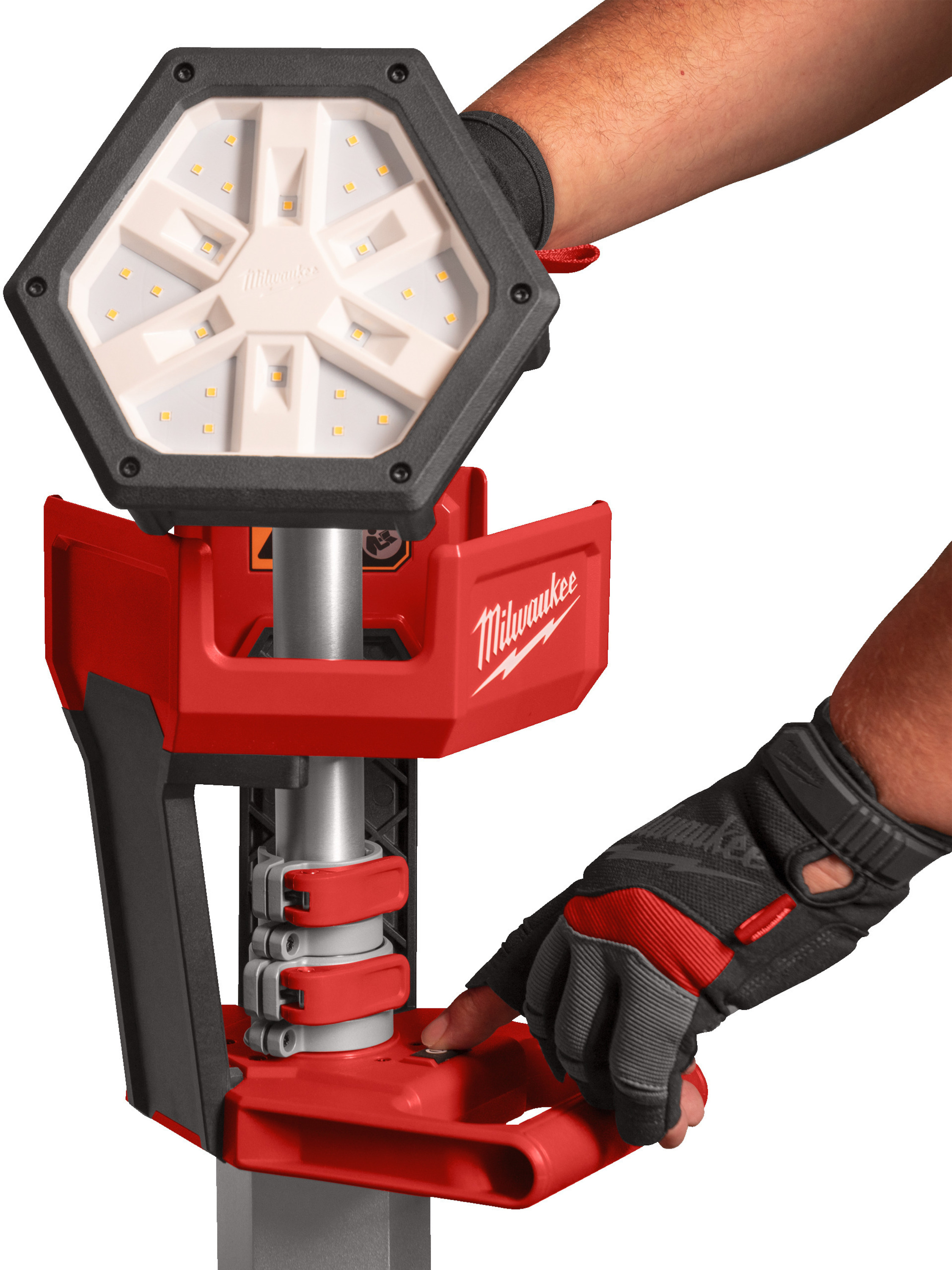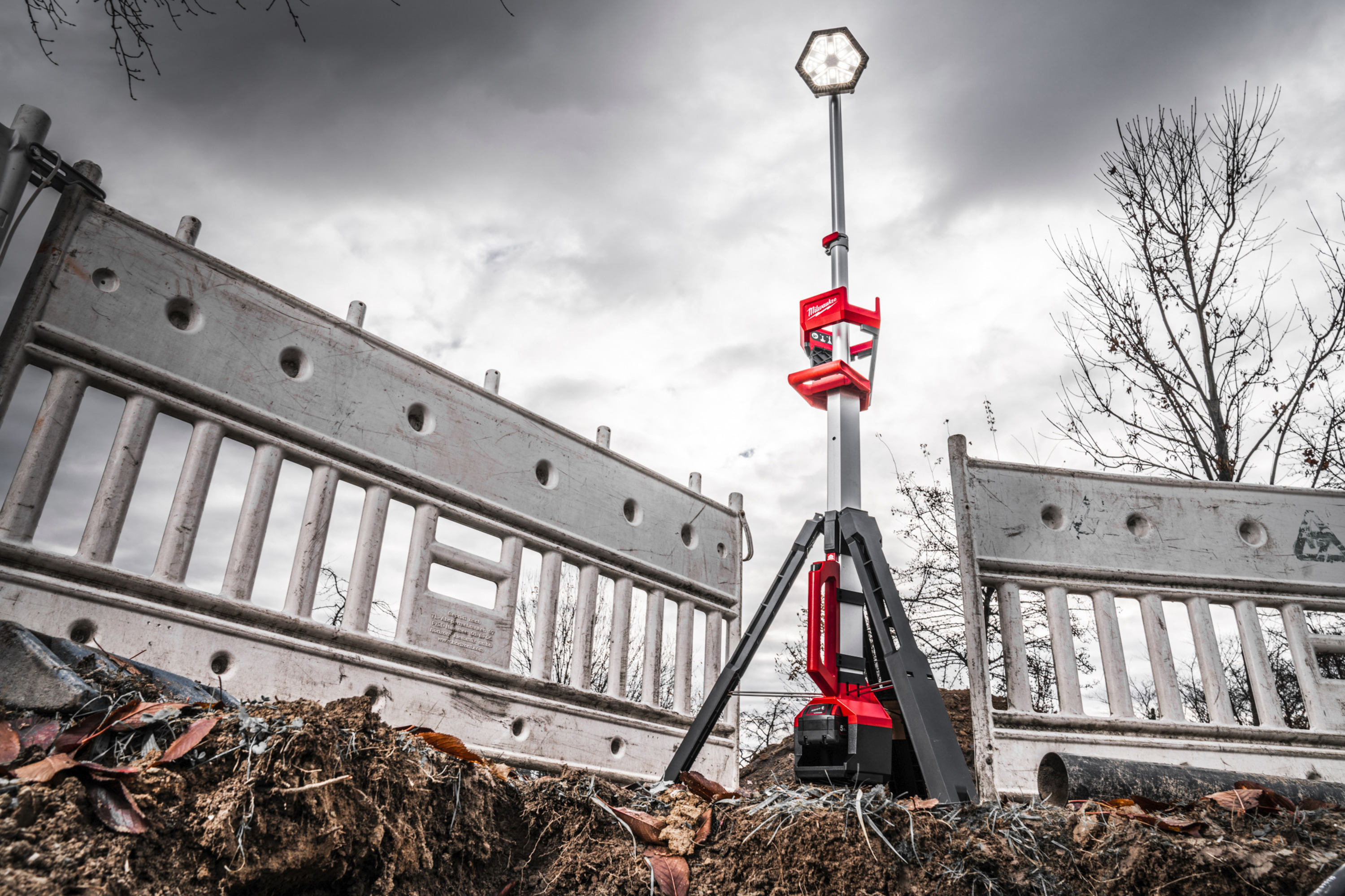 TRUEVIEW LED osvětlení s vysokým rozlišením. Světelný výkon až 2800 lm ve třech režimech. Otočná hlava 230° vertikálně a 240° horizontálně. Teleskopická tyč 1,1 - 2,2 m. Odolná konstrukce s krytím IP54. Stabilní základna s nízkým těžištěm. Indikátor vybití akumulátoru. Kompatibilita se všemi akumulátory Milwaukee M18