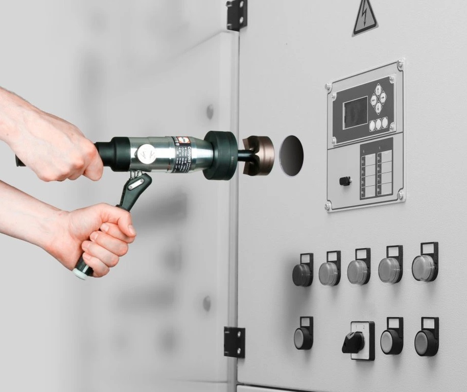 Maximální vysekávací kapacita: Kulaté otvory do plechu 82 mm / 2 mm. Šroub do plechu 64 mm / 3 mm čtvercový otvor do 68 x 68 mm / 2 mm Plechový obdélníkový razník do 46 x 86 mm / 2 mm
