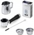 Uvítací balíček obsahuje: konvička na mléko (300ml), odvápňovací prostředek, štěteček, sítko na jednu a dvě porce.